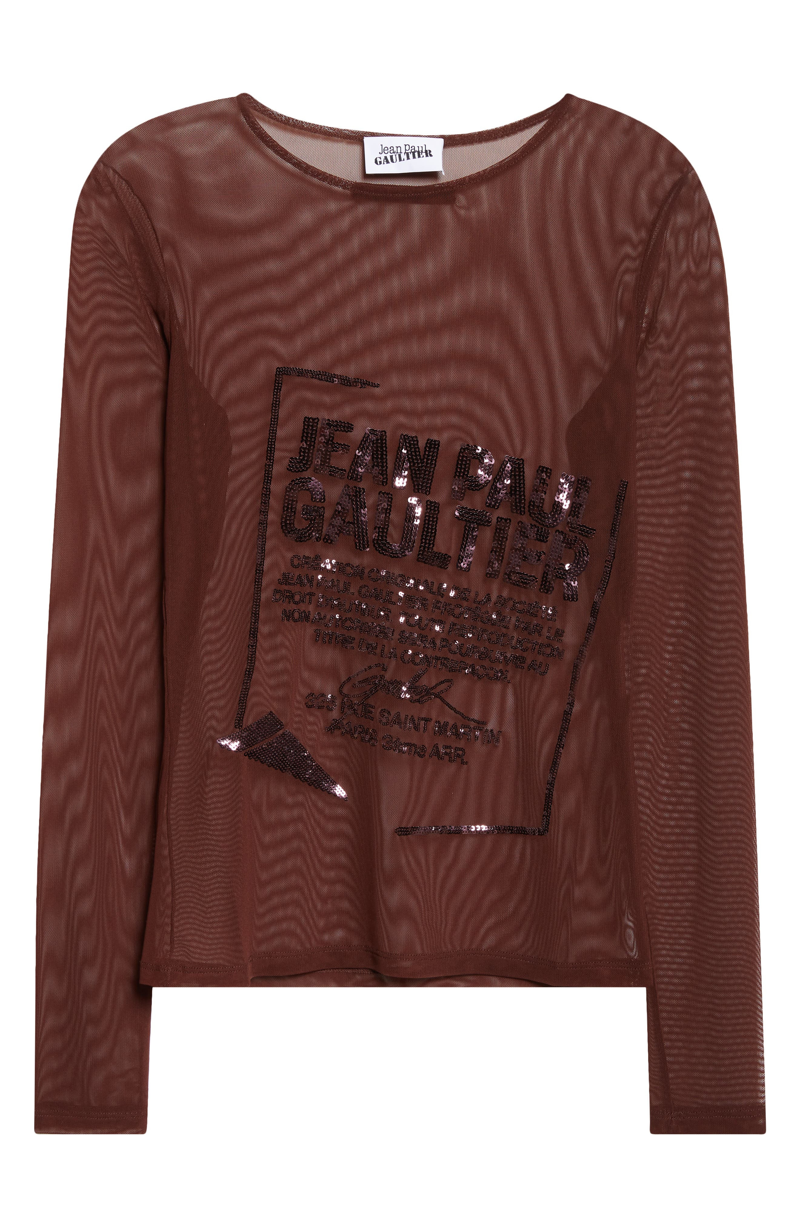 Jean Paul Gaultier Sequin Embellished Long Sleeve Mesh Top in Burgundy at Nordstrom