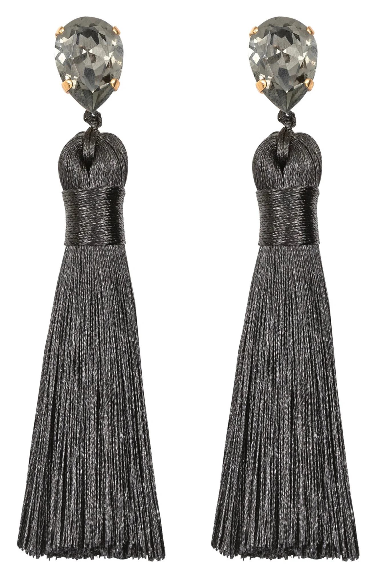 Dial up the drama of your ensembles with these shoulder-grazing drop earrings comprised of silk tassels that nod to art deco interiors. 4 1/4" drop Post back Silk/glass/18k-gold plate Made in the USA