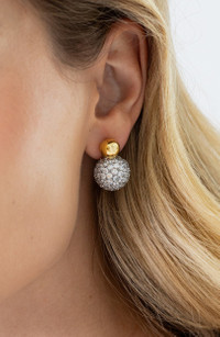 Catch the light with every move you make in these two-tone stacked earrings featuring a high-polish 18-karat gold-plated accent atop a glittering crystal-pave ball. Post back 18k-gold plate/rhodium plate/crystal Made in the USA of imported materials