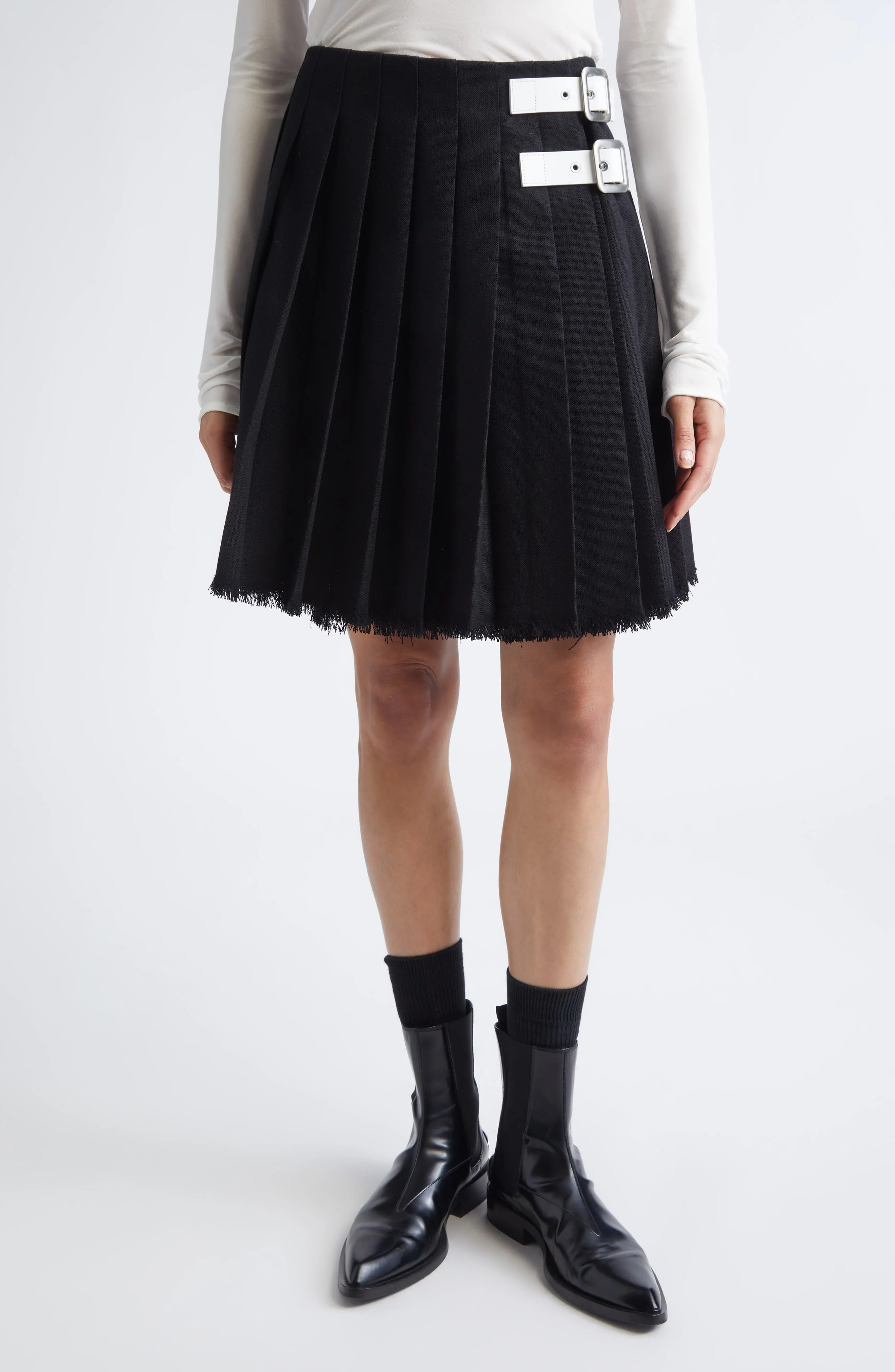 This A-line skirt crafted from wool canvas aces the prep-school-chic aesthetic with sharp pleats, while contrast buckled belts and a fraying hem balance it out with a little edge. Double buckled-belt closure Cotton lining 100% wool Dry clean Made in Italy Designer Clothing