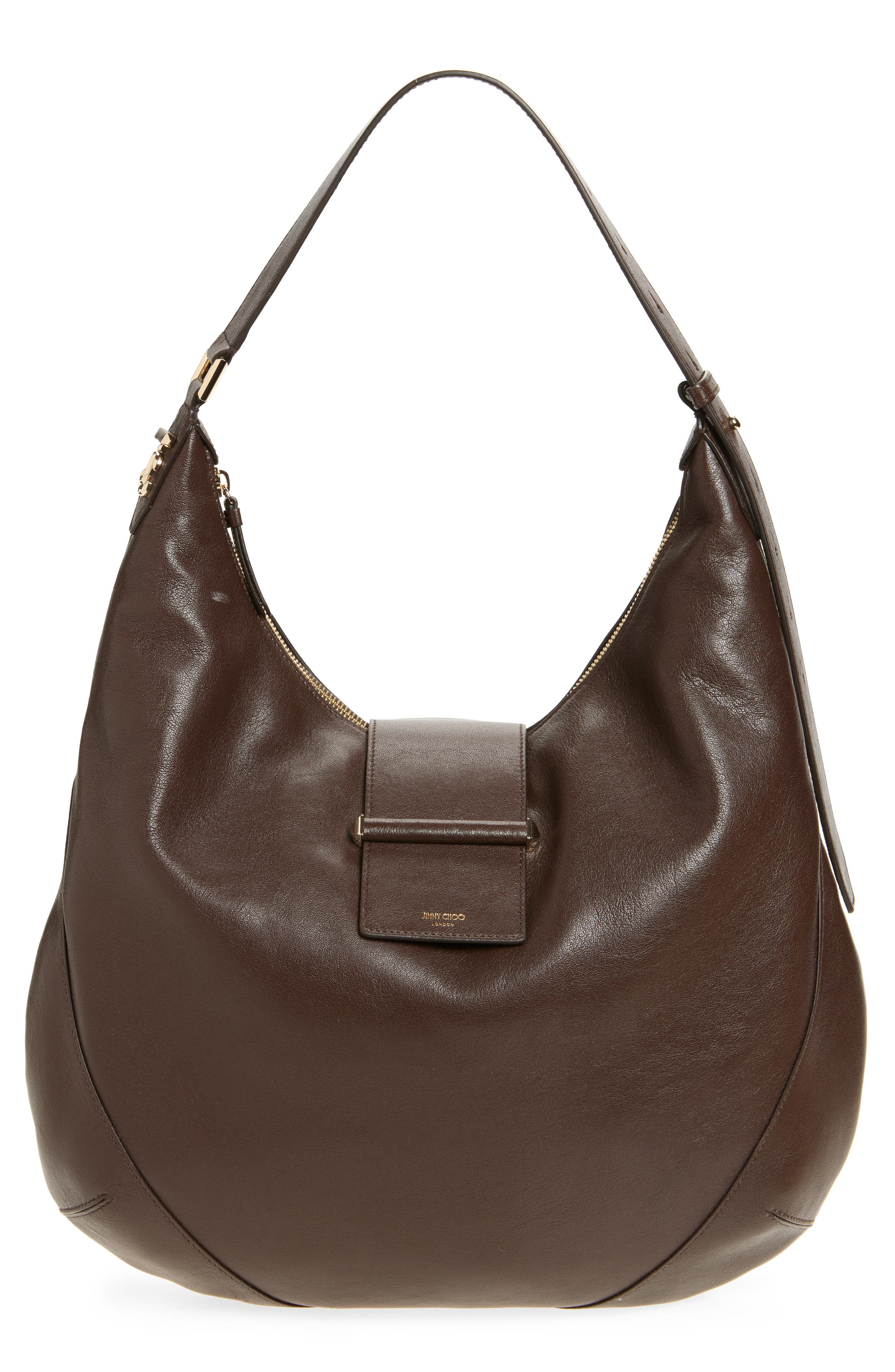 Jimmy Choo Bar Medium Leather Hobo Shoulder Bag in Chocolate/Shiny Gold at Nordstrom