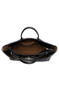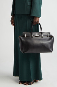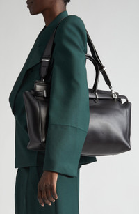 Signature diamond hardware secures the wraparound belt on this lightly structured leather tote that offers carrying options with rolled top handles and a removable strap. Top zip closure Top carry handles; removable, adjustable crossbody strap Interior wall pocket Leather Made in Italy Designer Handbags