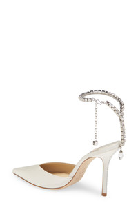 Jimmy Choo Saeda Crystal Ankle Strap Pointed Toe Pump in Ivory/Crystal at Nordstrom