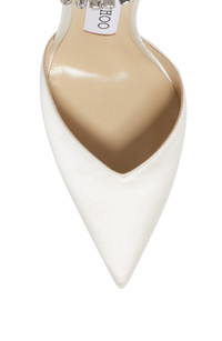 Saeda 100 Ivory Satin Pumps with Crystal Embellishment