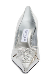 Handwoven corset detailing accentuates the pointy toe of this glamorous metallic leather pump balanced on a signature drop heel. 2" (50mm) heel Leather upper and lining/leather and rubber sole Made in Italy Designer Shoes