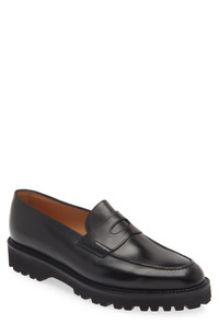 Refined materials and impeccable craftsmanship elevate a timeless leather penny loafer designed with a hand-stitched apron toe and flexible lug sole. Leather upper and lining/rubber sole Made in the UK Designer Shoes