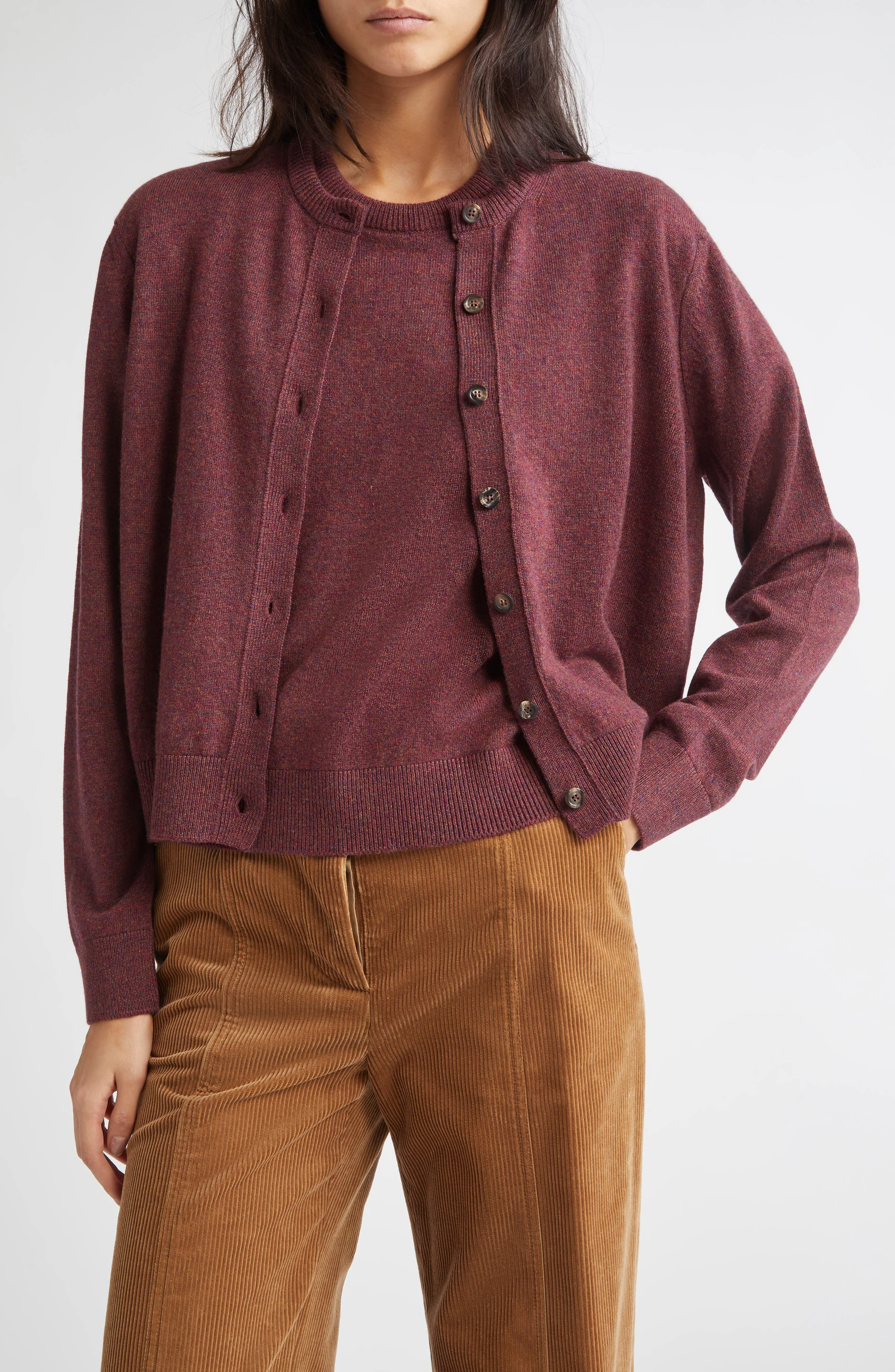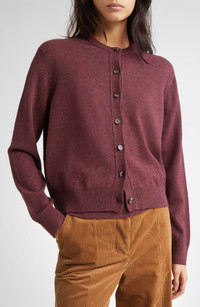 Johnstons of Elgin Classic Cashmere Crewneck Cardigan in Damson at Nordstrom
