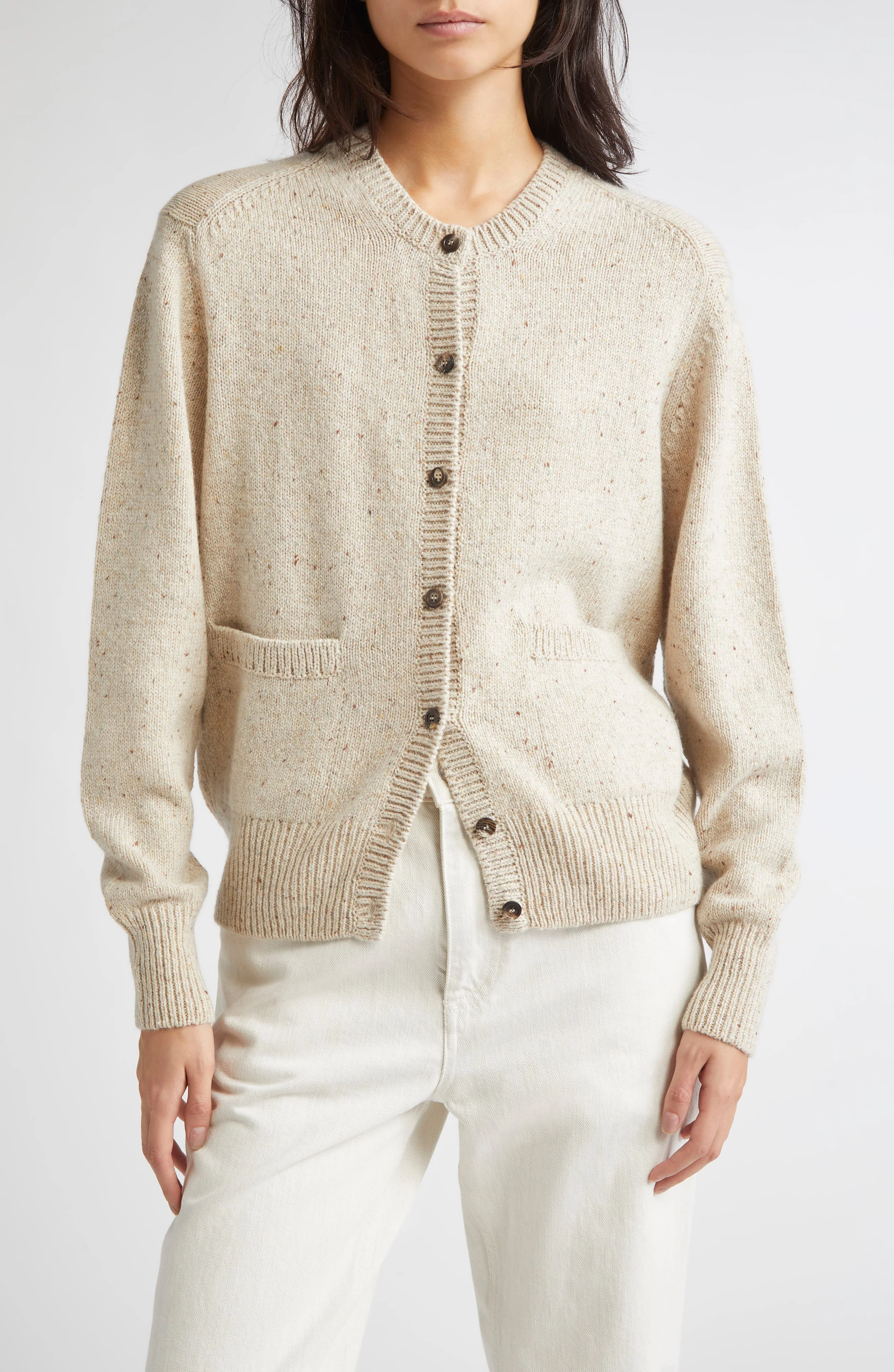 Johnstons of Elgin Donegal Cashmere Crewneck Cardigan in Cream Dun Donegal at Nordstrom