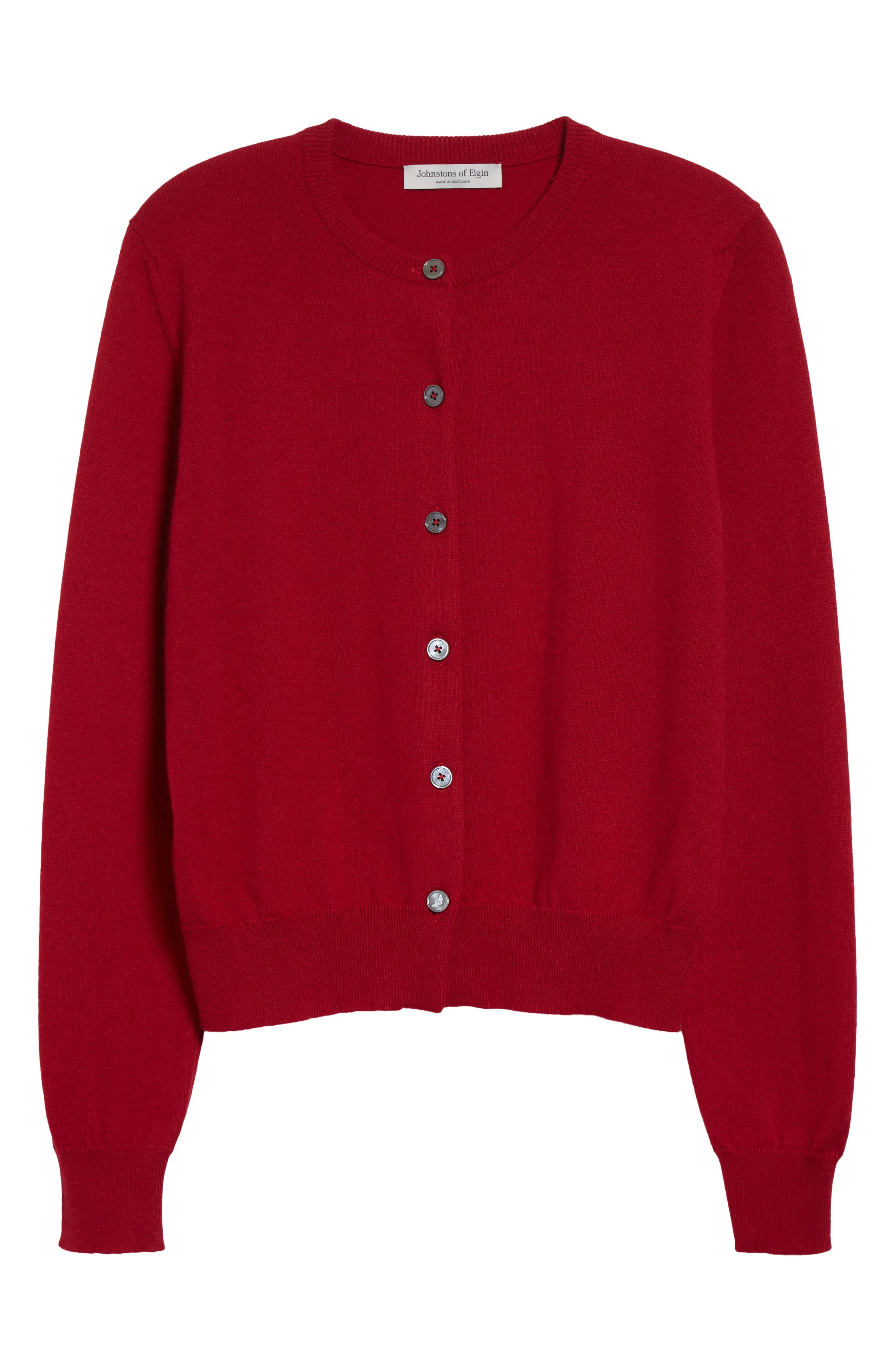 Johnstons of Elgin Iris Cashmere Crewneck Cardigan in Claret at Nordstrom