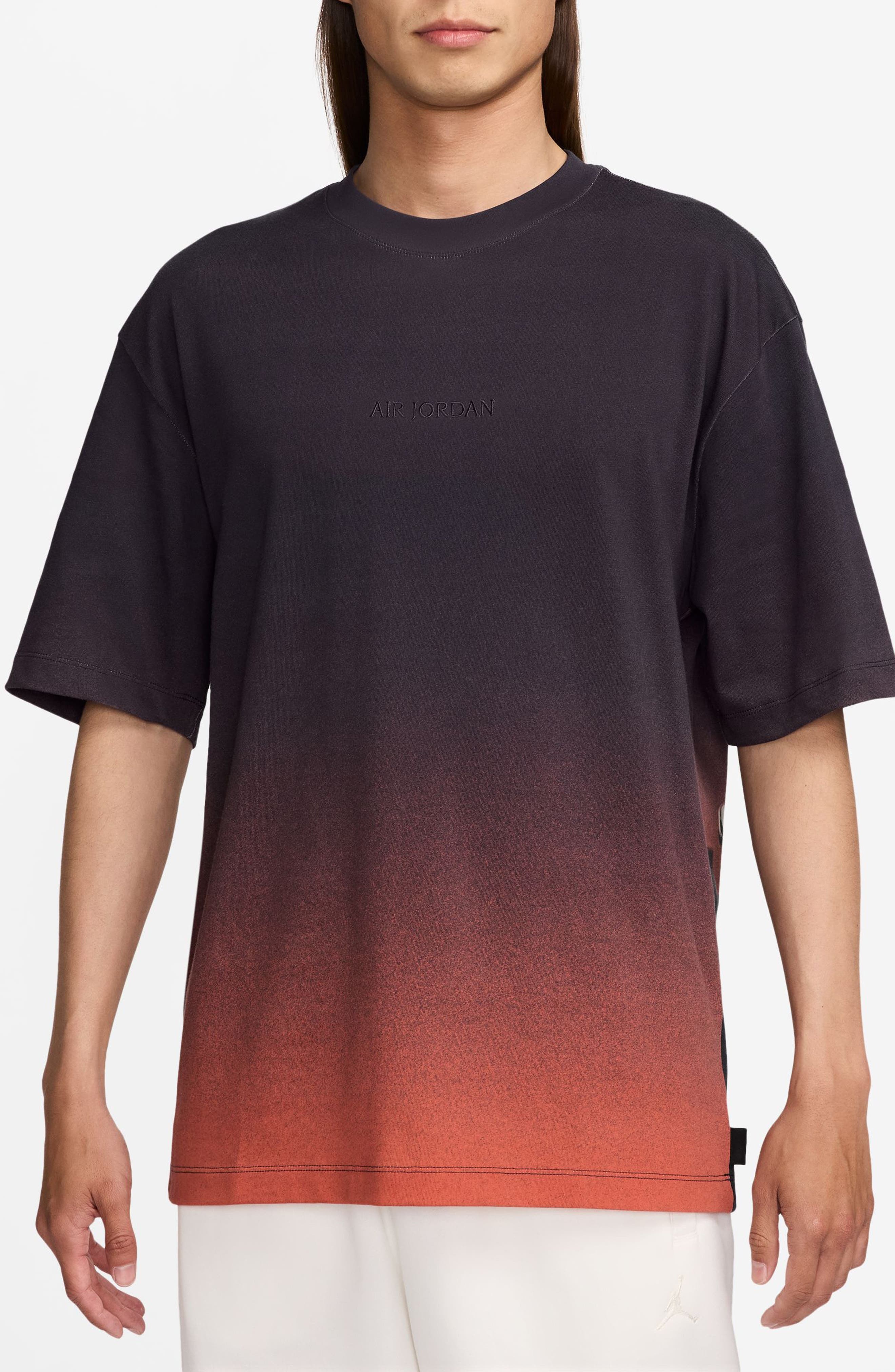 Jordan is captured in flight above the silhouetted cityscape on the back of this heavyweight, gradient-hued cotton T-shirt. 28 1/2" length (size Medium) Crewneck Short sleeves 100% cotton Machine wash, tumble dry Imported Nordstrom x Nike: A curated lifestyle destination where fashion is the ultimate sport