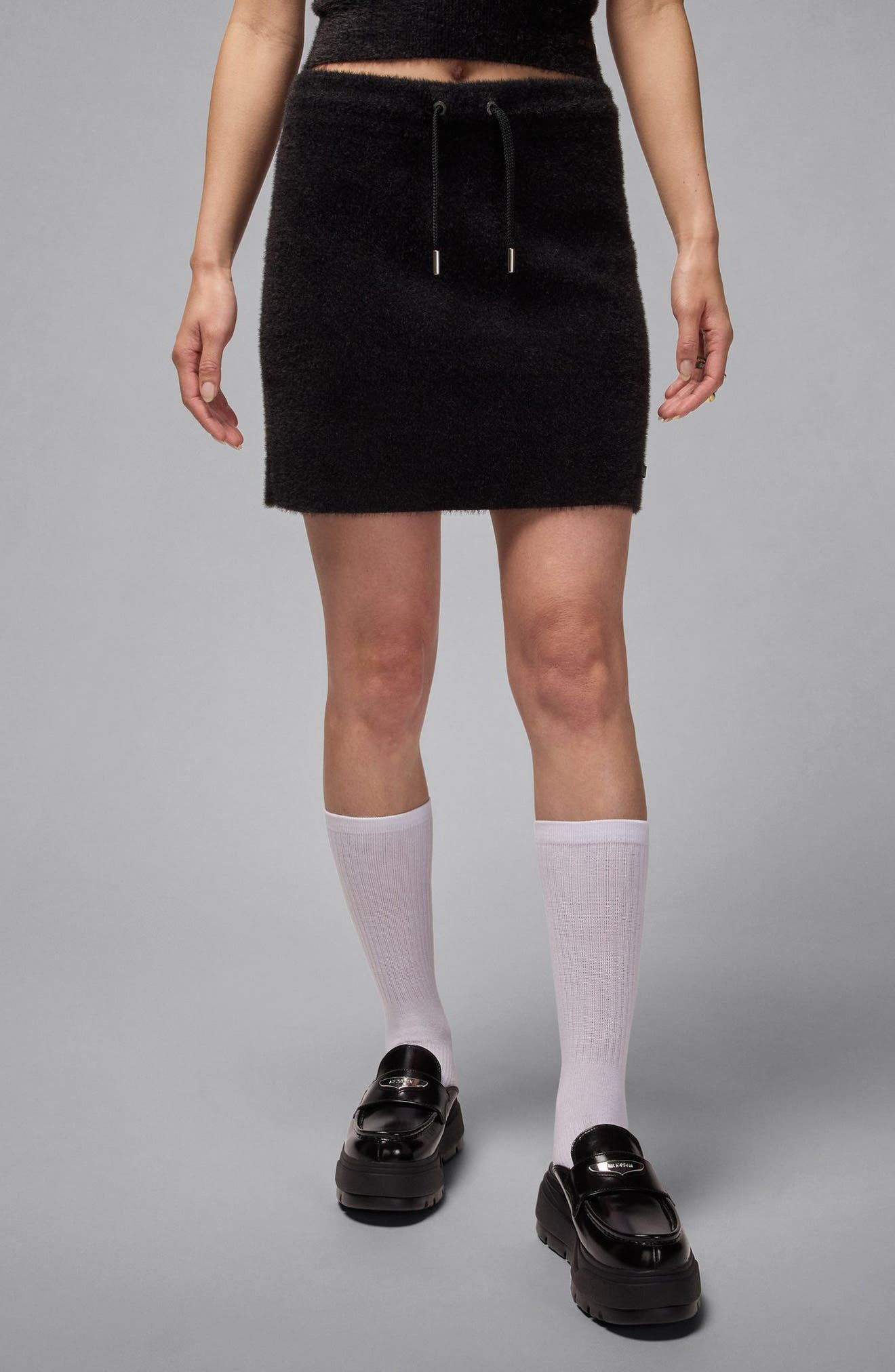 Opt for a cute courtside look in this mini sweater-skirt that's textured like fuzzy mohair and topped with a sporty drawstring waist. Elastic/drawstring waist 59% acrylic, 28% lyocell, 13% linen Machine wash, dry flat Imported Nordstrom x Nike: A curated lifestyle destination where fashion is the ultimate sport