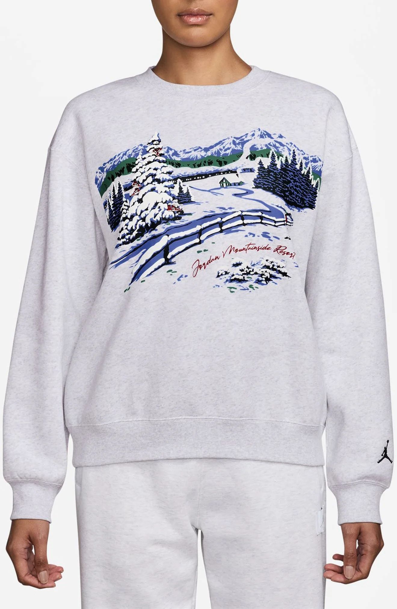 Kick back apres-ski or warm up post cooldown in this cotton-rich fleece sweatshirt embroidered with Jumpman iconography—a tribute to the GOAT behind the brand. Crewneck Dropped shoulders Ribbed cuffs and hem 80% cotton, 20% polyester Machine wash, dry flat Imported Nordstrom x Nike: A curated lifestyle destination where fashion is the ultimate sport