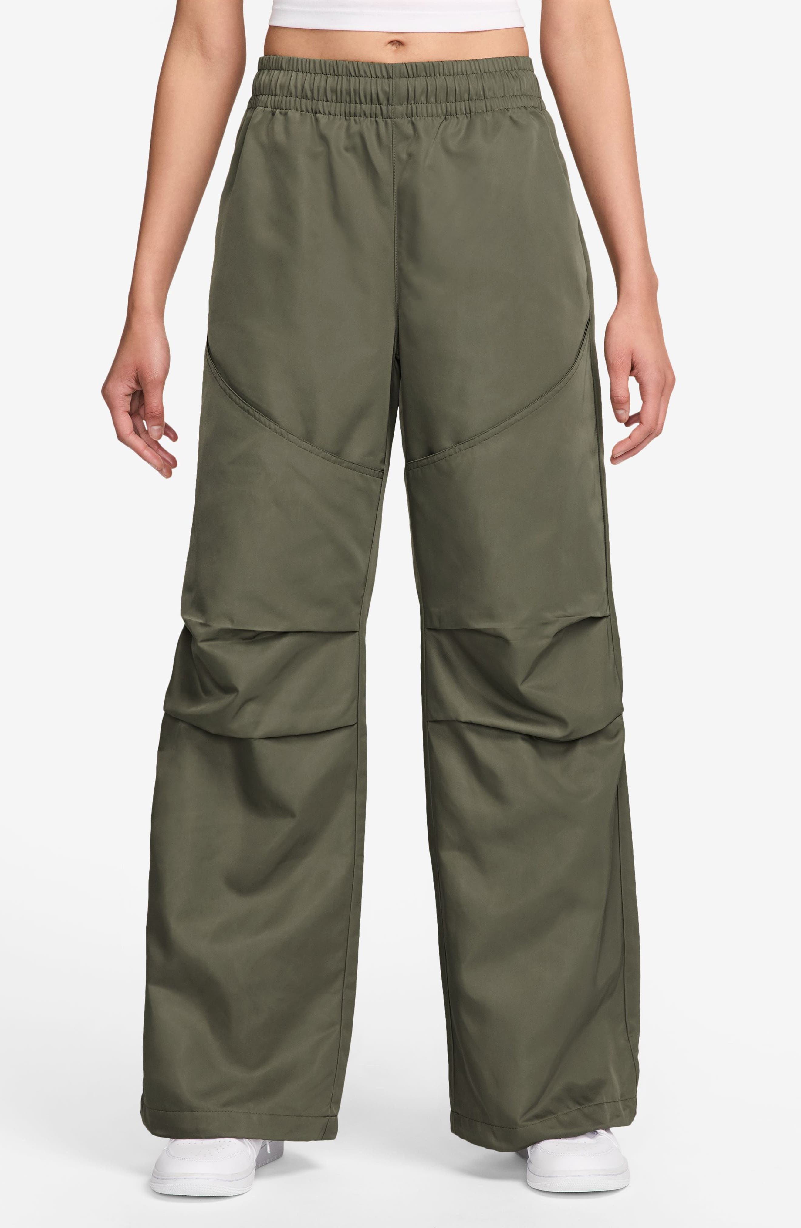 Water-repellent twill enhances the utility of sporty mid-rise pants constructed in a comfortably loose fit with darts at the knees and drawcord-toggle hems. Nordstrom x Nike: A curated lifestyle destination where fashion is the ultimate sport Elastic waist with internal drawcord Side-seam pockets; back welt pocket Drawcord-toggle hems Water repellent 100% polyester Machine wash, line dry Imported