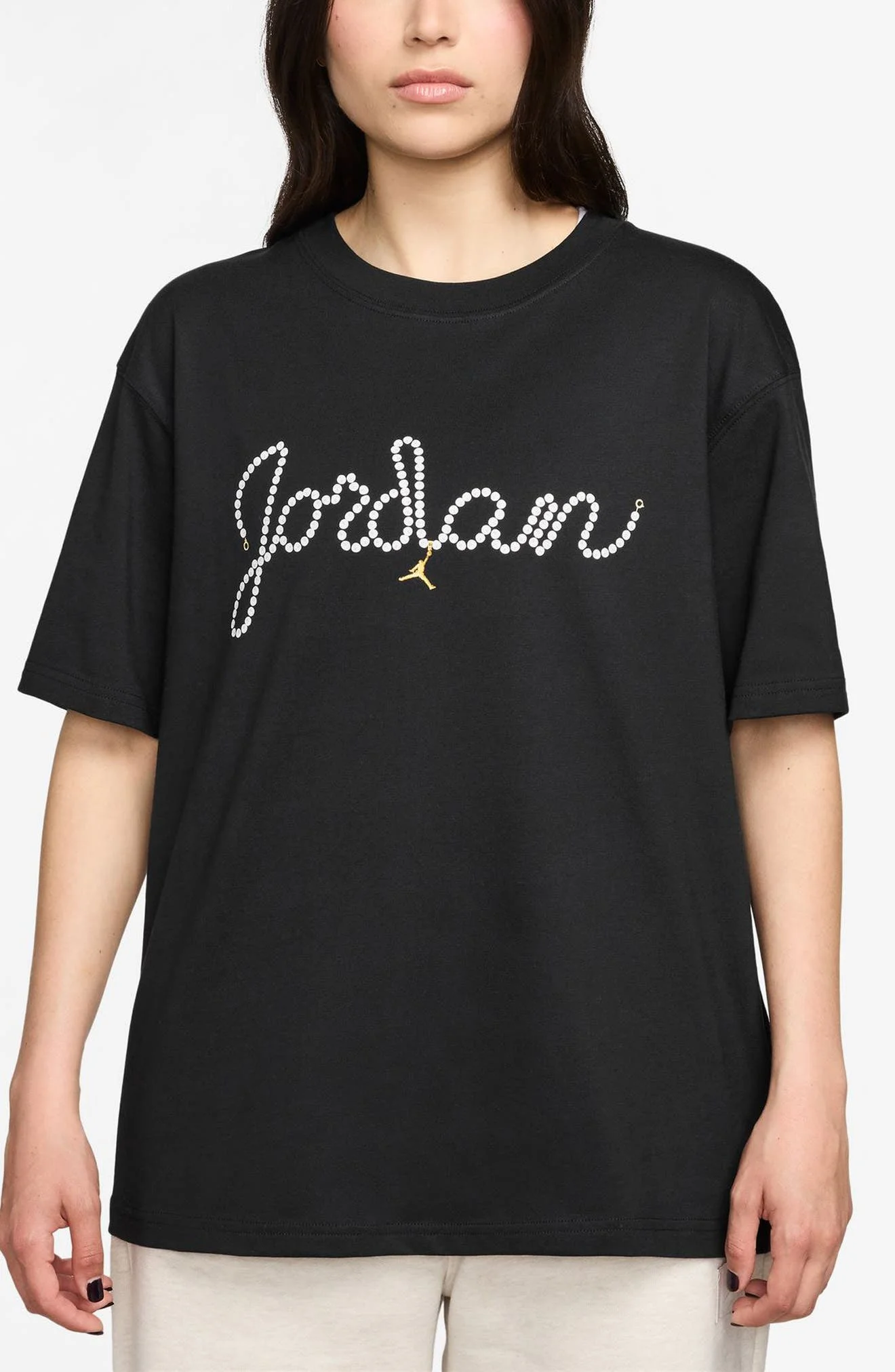 Signature style almost sparkles off this cotton graphic T-shirt highlighted with a Jumpman charm. Crewneck Elbow-length sleeves 100% cotton Machine wash, dry flat Imported Nordstrom x Nike: A curated lifestyle destination where fashion is the ultimate sport