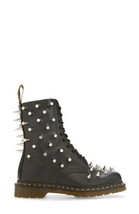Designed in collaboration with Dr. Martens, an iconic boot gets a punk-luxe update in black leather bristled with conical and spike studs. Lace-up style Leather upper/leather and textile lining/synthetic sole Imported Designer Shoes