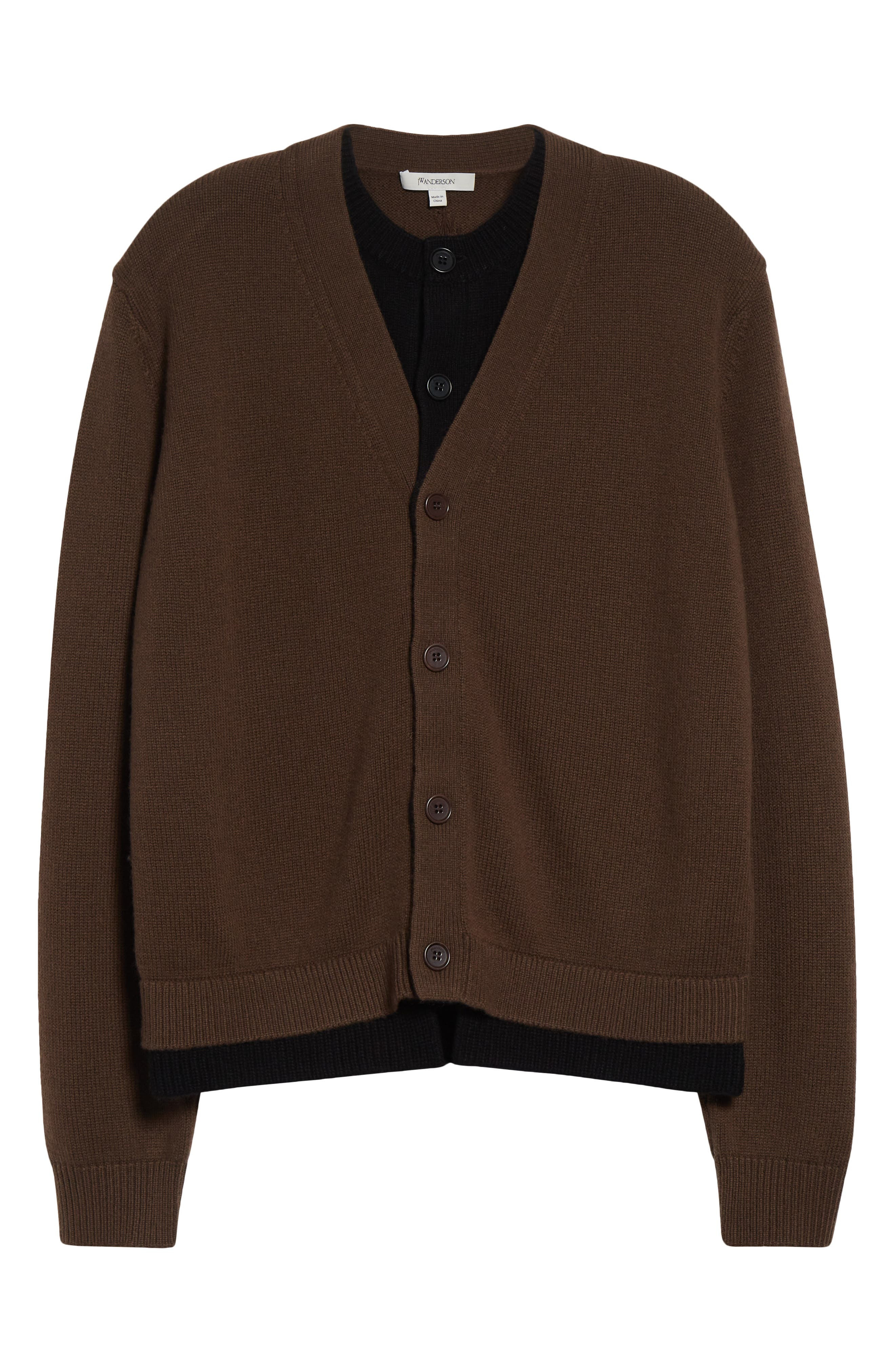 JW Anderson Contrast Layered Wool & Cashmere Cardigan in Brown at Nordstrom