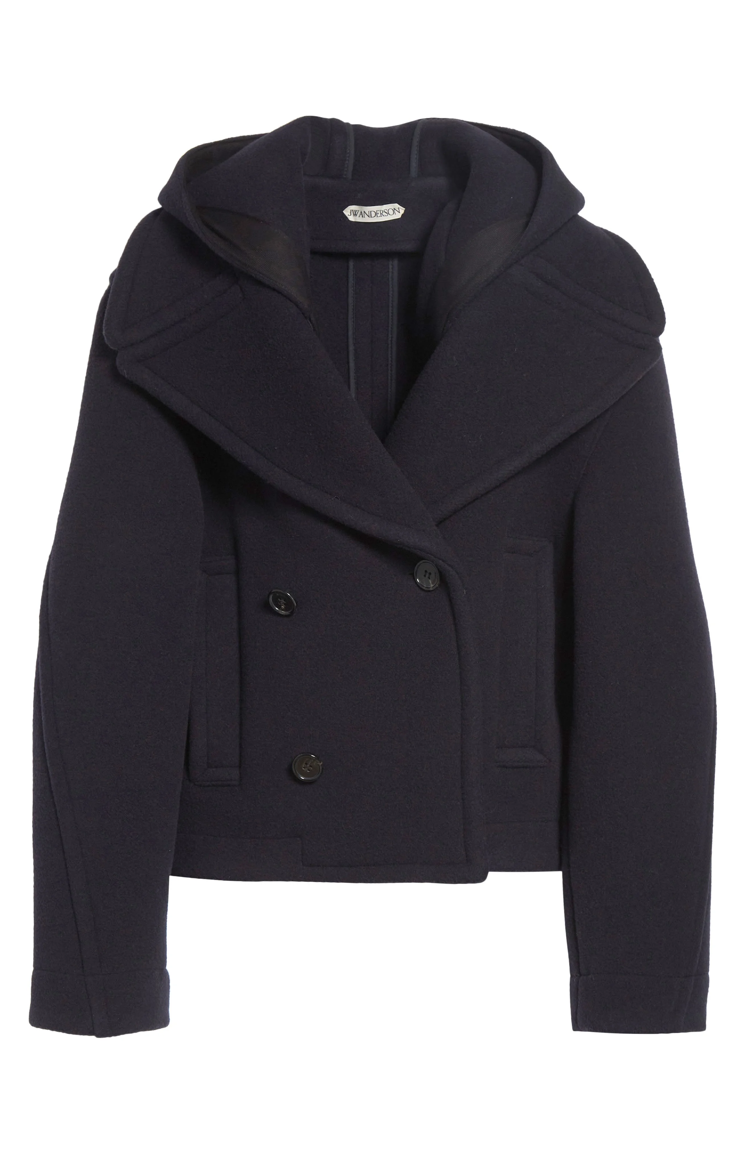 JW Anderson Crop Double Face Wool Peacoat with Removable Hood in Navy at Nordstrom