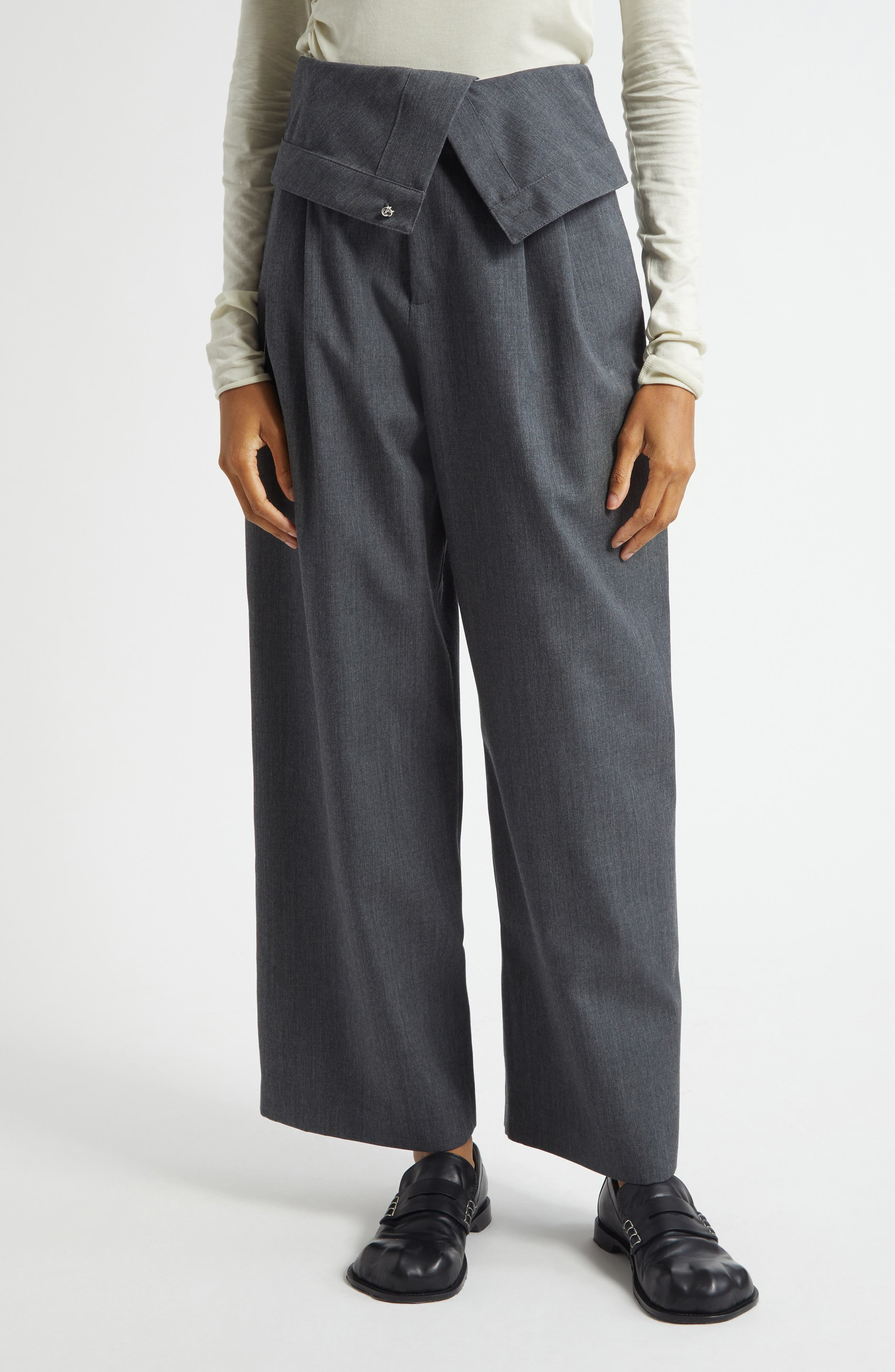 JW Anderson Foldover Wool Trousers in 972 Charcoal Melange at Nordstrom