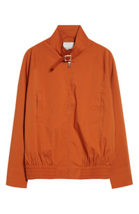 A buckle strap at the stand collar accentuates the utility appeal of this Harrington jacket cut from a cotton blend with plenty of stretch for easy-moving comfort. Front zip closure Stand collar Button cuffs Front welt pockets Lined 60% cotton, 32% nylon, 8% elastane Dry clean Imported Designer Clothing