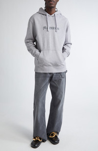 JW Anderson Logo Embroidered Hoodie in Grey Melange at Nordstrom