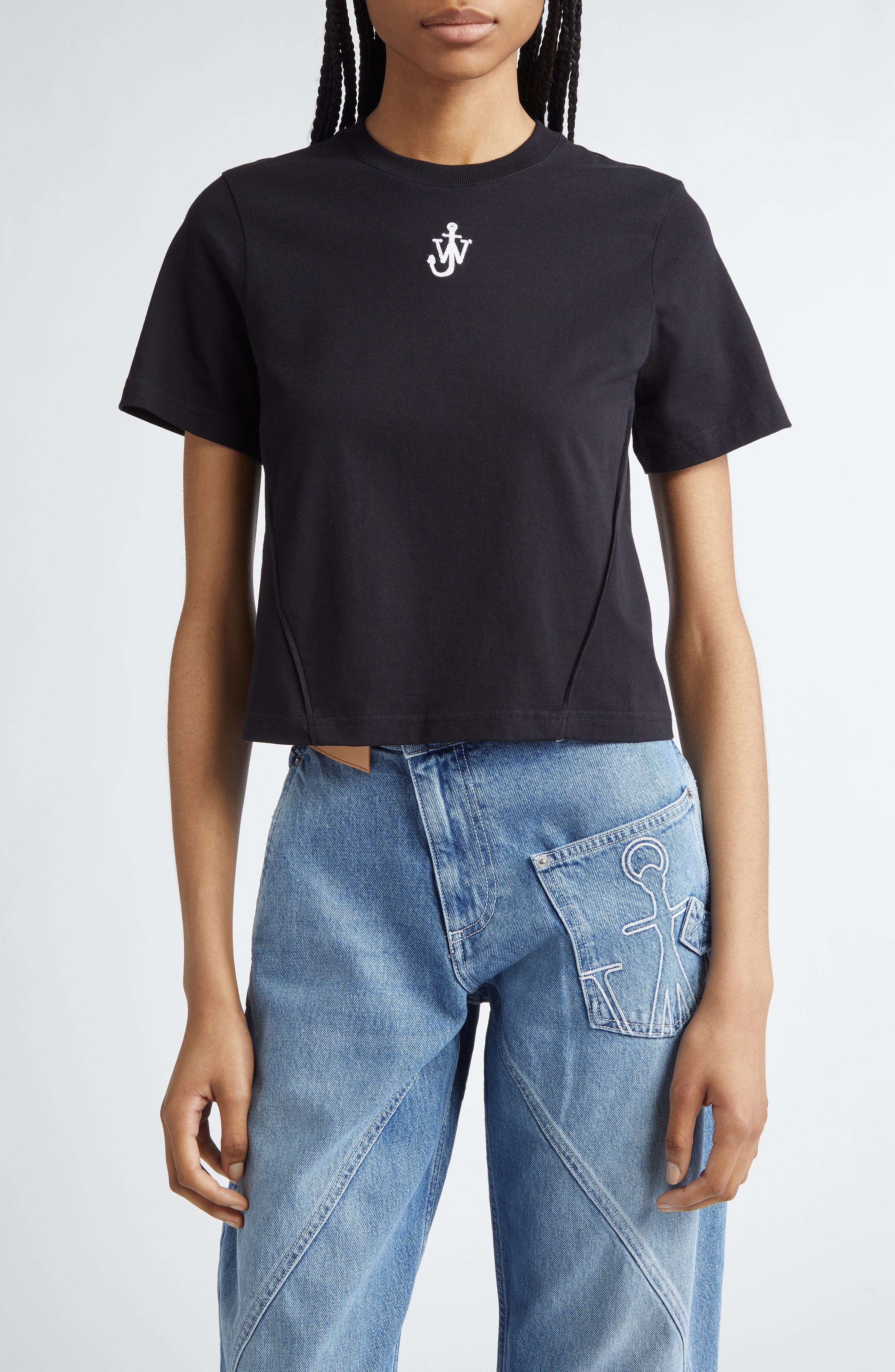 JW Anderson Panelled Anchor Embroidered Crop T-Shirt in Black at Nordstrom