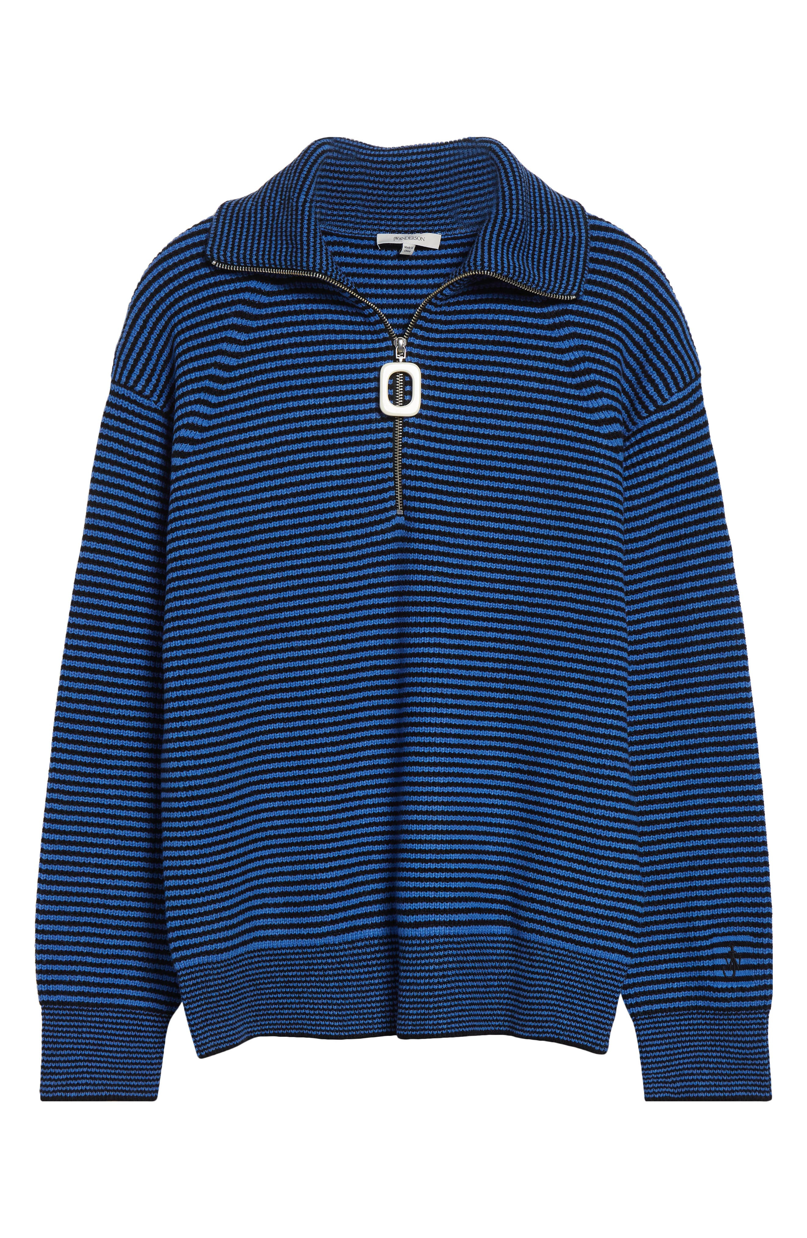 JW Anderson Stripe Half Zip Sweater in Blue/Black at Nordstrom