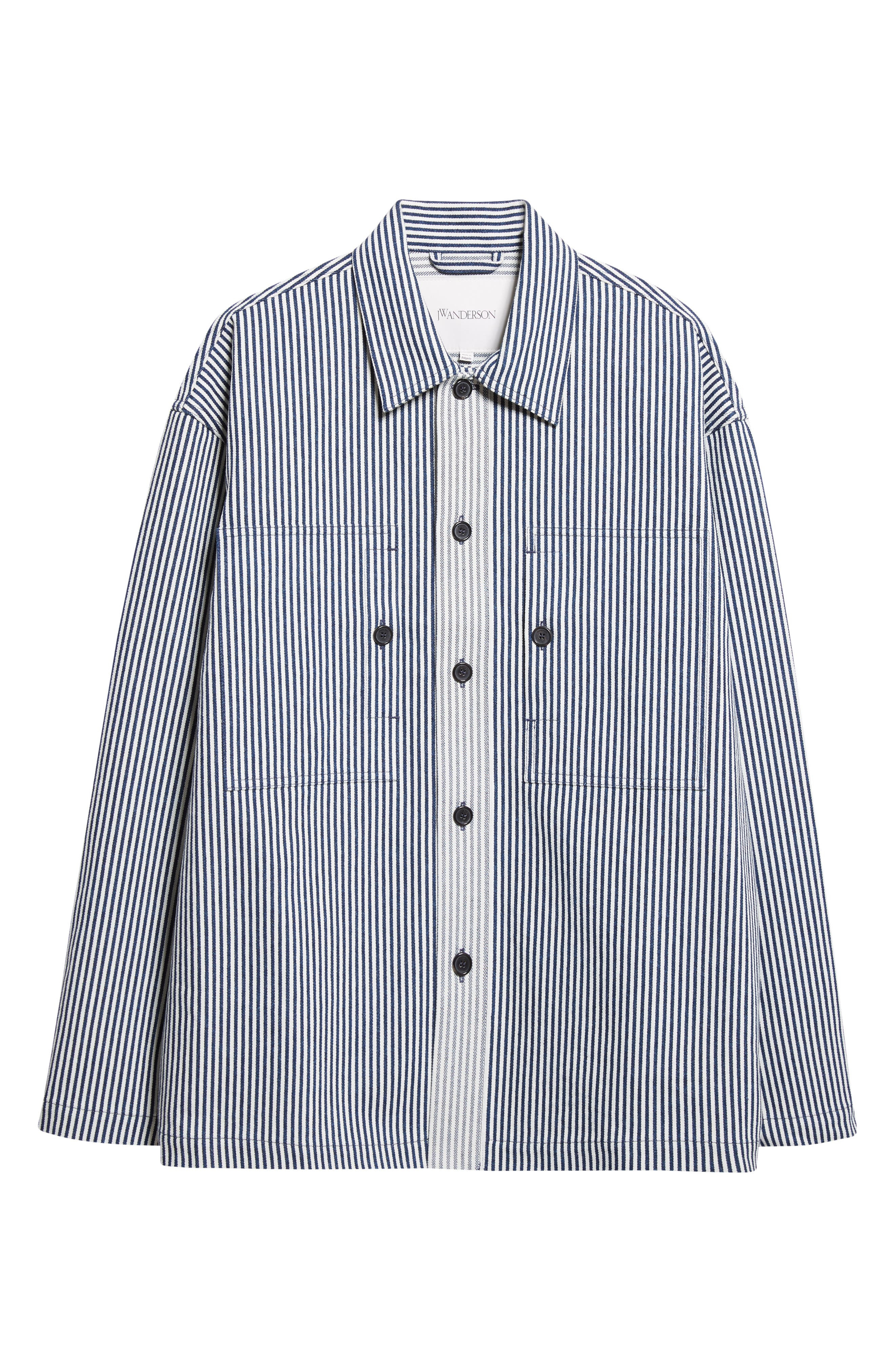 JW Anderson Stripe Patch Pocket Overshirt in Off White/Navy at Nordstrom