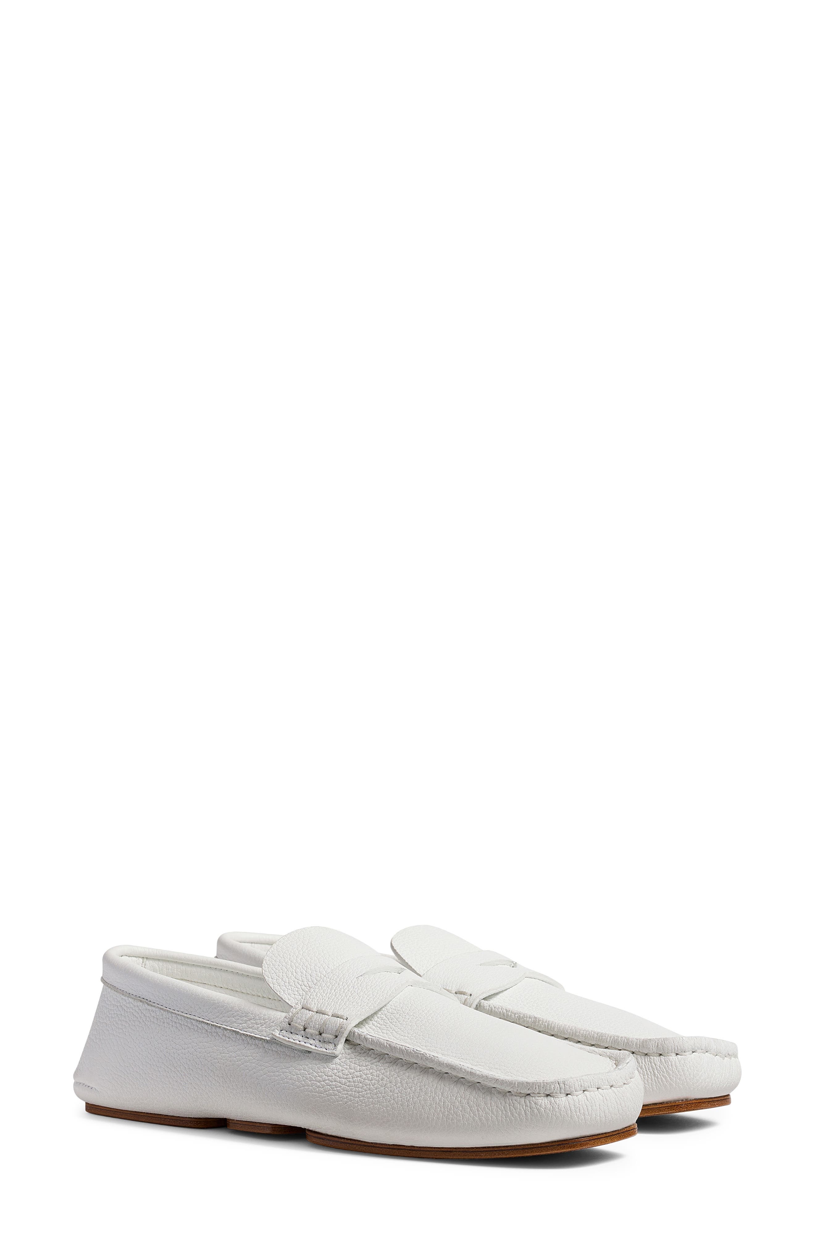 A classic penny keeper and moc-stitched square toe bring a timeless ease to this everyday loafer crafted in Italy from grained calfskin for exceptional softness and distinctive lived-in texture. Leather upper, lining and sole Made in Italy Designer Shoes