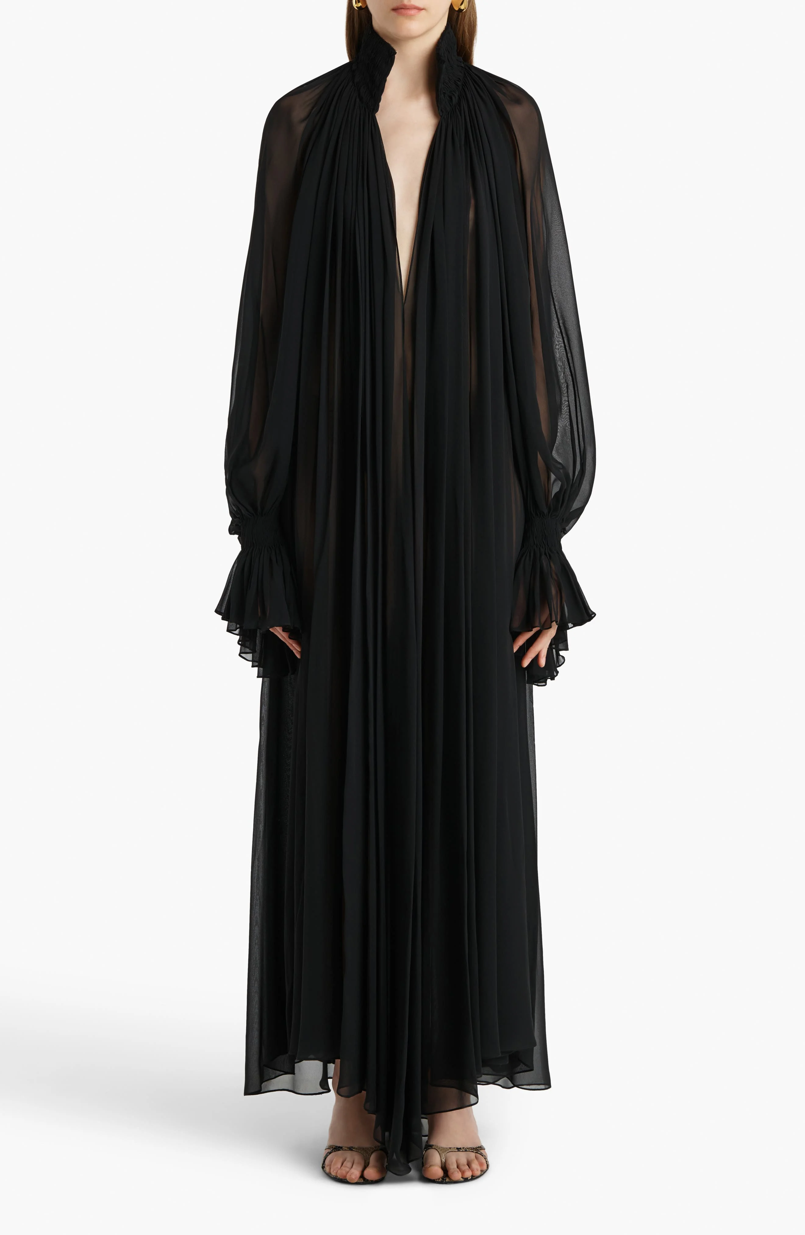 Edgar Pleated Silk-Chiffon Maxi Dress black