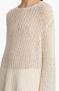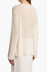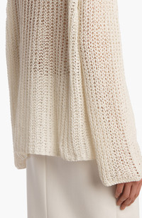 Japanese-spun cotton chain yarns bring unique texture to this drapey sweater knit in a loose fisherman's rib and finshed by hand in crocheted trim at the collar and cuffs. Ballet neck Long sleeves Dropped shoulders Semisheer 100% cotton Dry clean Imported Designer Clothing