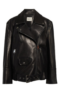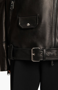 Hansel oversized belted leather biker jacket Black