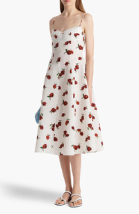 Usher in a sumptuous season in this sweetly structured fit-and-flare dress that's cut from silk-and-cotton organza and splashed with plump raspberries. Hidden side-zip closure Sweetheart neck Spaghetti straps 53% silk, 47% cotton Dry clean Made in Italy Designer Clothing