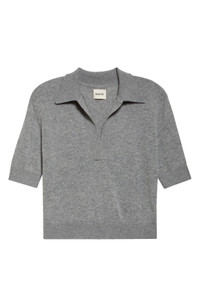 Khaite Jo Shrunken Stretch Cashmere Polo Sweater in Warm Grey at Nordstrom
