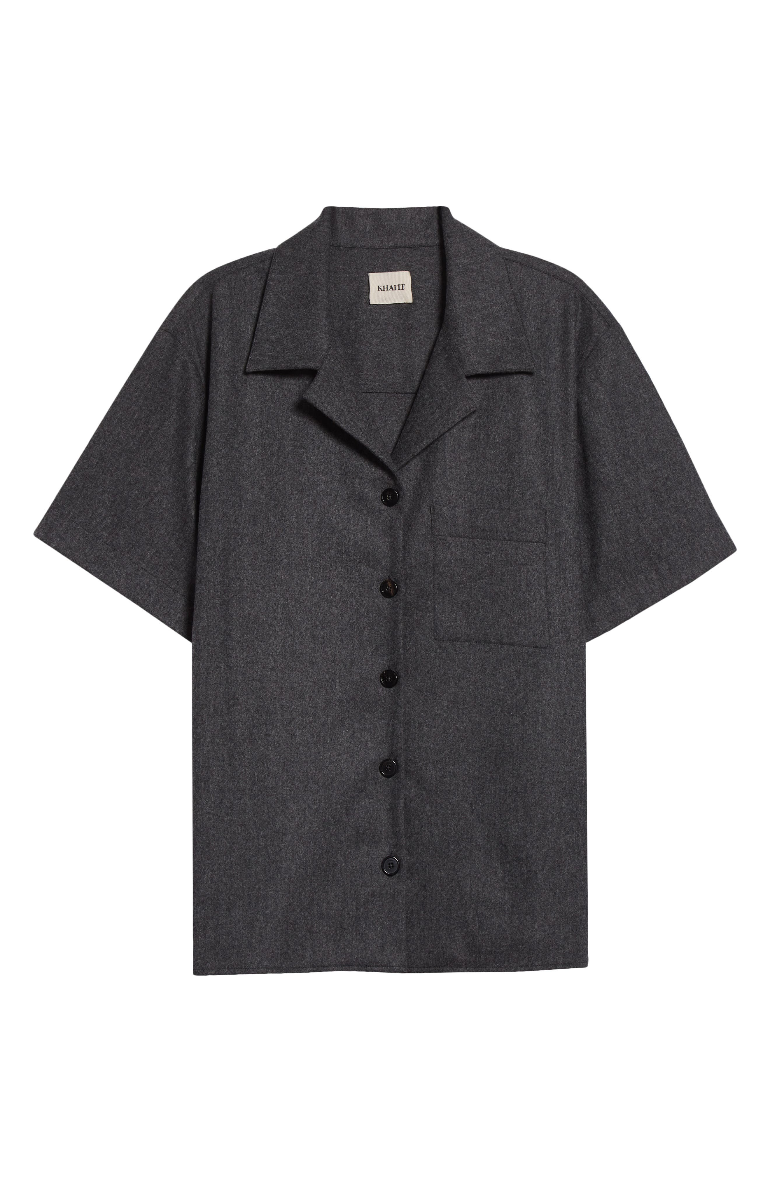 This menswear-style camp shirt featured on the runway is from Cat Holstein's fall '25 collection, largely inspired by the films and personal favorites of the late director David Lynch. As such, it is an eclectic collection that ranges widely across fabrications and fashion eras, with this backyard barbecue–fluent shirt muscling it's way into the womenswear space in an elegant, fluid construction from shirting wool. Front button closure Notched collar Short sleeves Chest patch pocket 100% wool Dry clean Made in Italy Designer Clothing