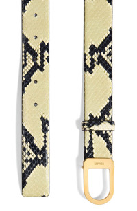 A sculptural buckle brings gleaming, jewelry-like refinement to this statement-making belt made from snakeskin-embossed calfskin leather. 1" belt width Leather Made in Italy