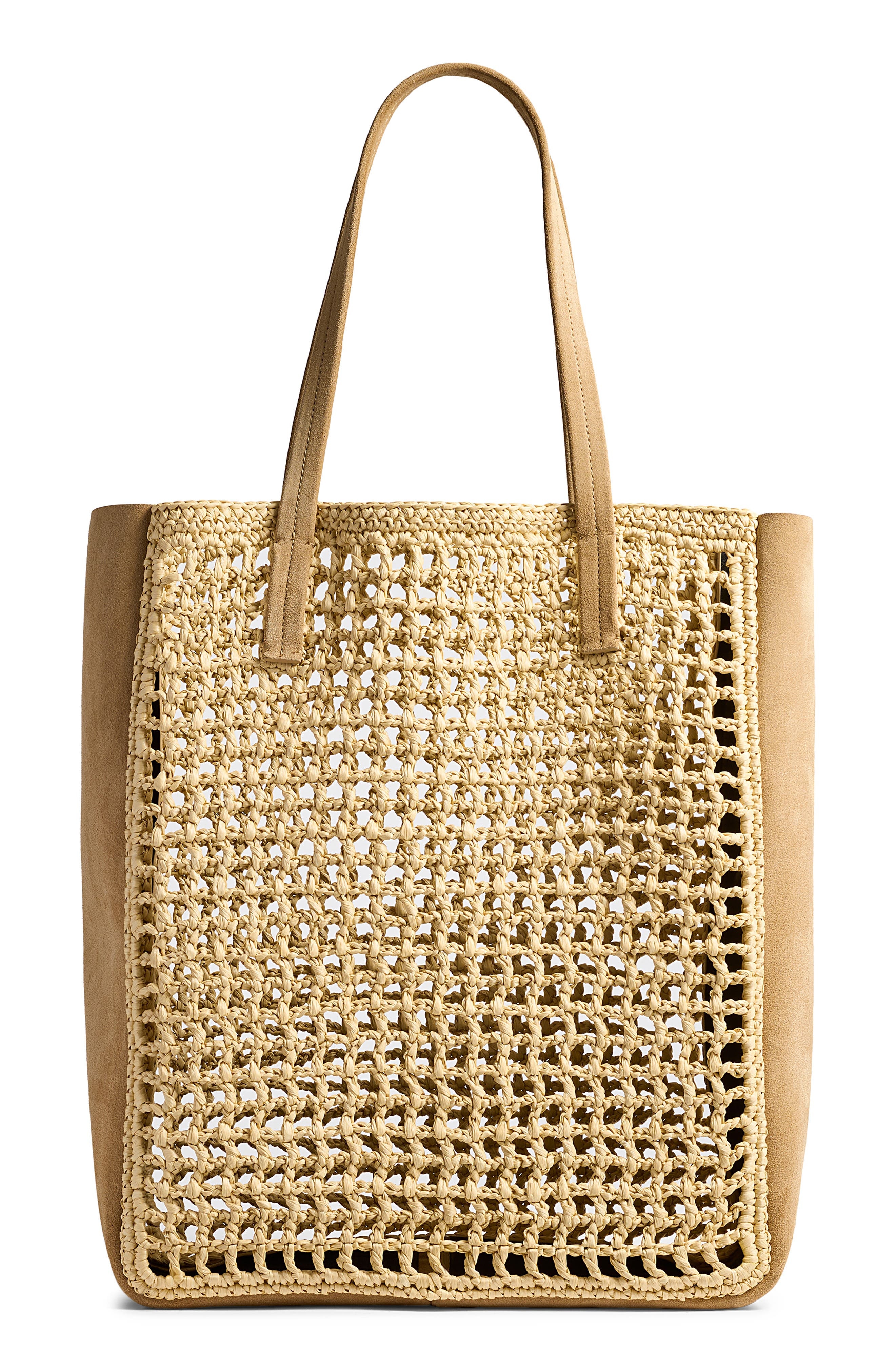 Zoe small suede and crocheted raffia tote Neutral