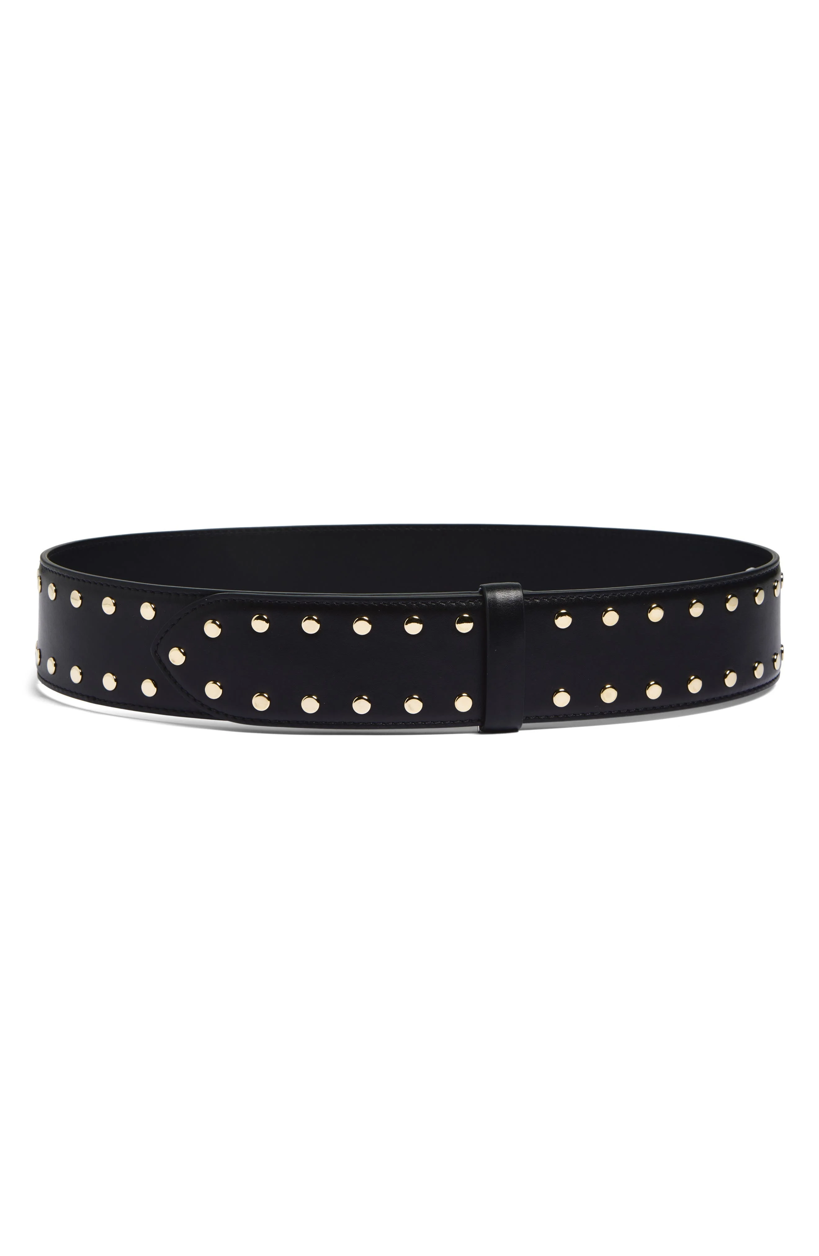 Scores of polished goldtone studs bring jewelry-like embellishment to this smooth Italian-calfskin belt secured with a discreet press-stud closure. Leather Made in Italy