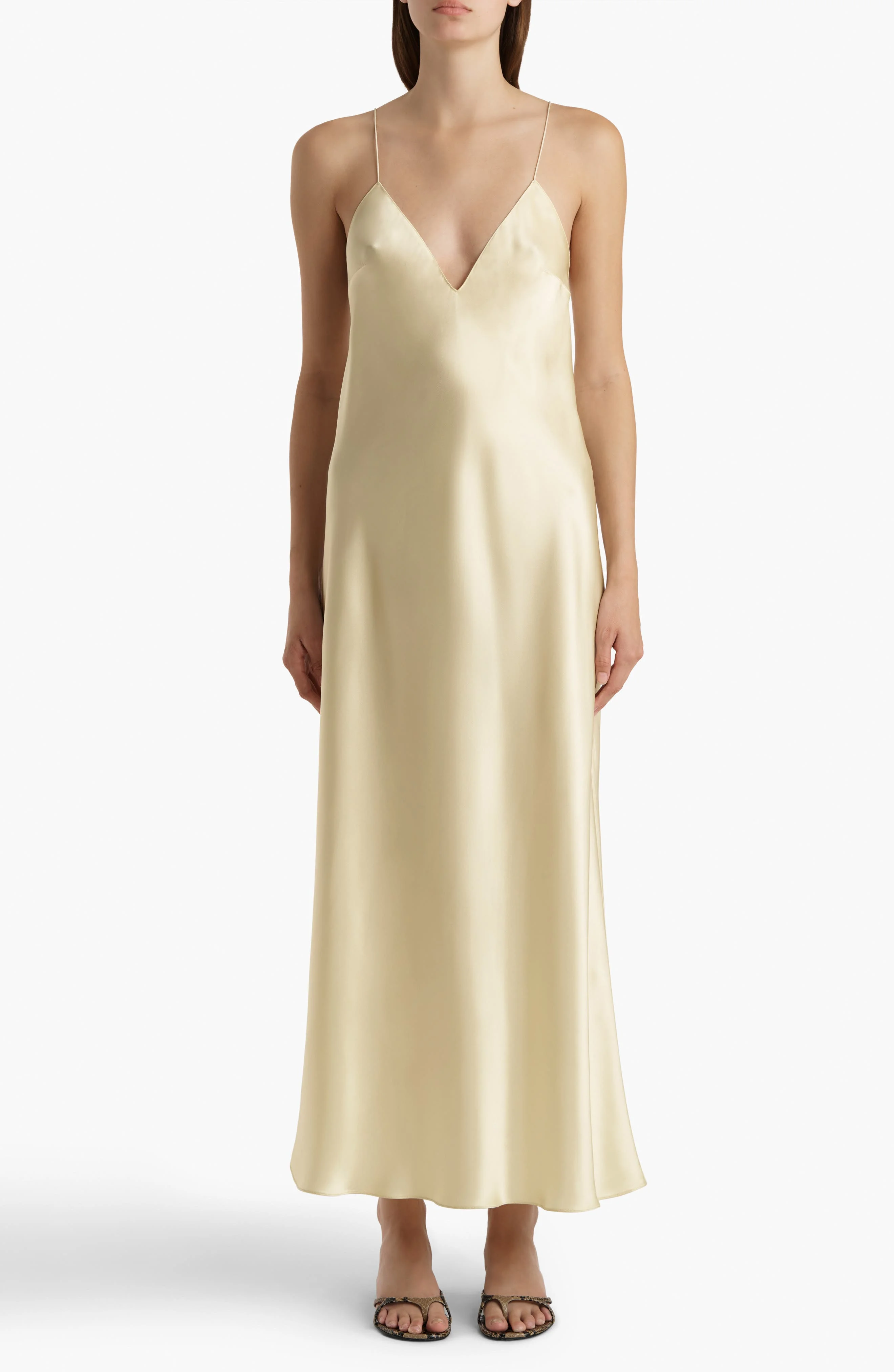 Khaite Taja Silk Satin Slipdress in Pale Yellow at Nordstrom