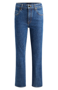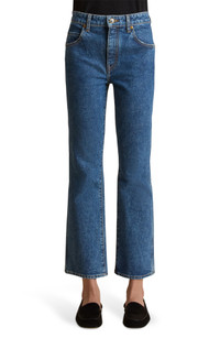A contemporary take on classic bootcut styles, these cropped, slightly flared jeans are cut from stretch denim with excellent flexibility and recovery. Each pair is finished by hand and sewn with an enameled antique-brass button for a distinctive touch. Zip fly with button closure Five-pocket style 98% cotton, 2% polyurethane Dry clean Made in the USA Designer Clothing