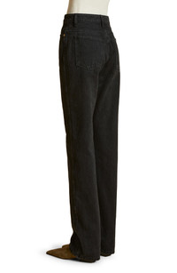 A superhigh waist and stovepipe silhouette visually elongate in these hand-finished jeans cut from nonstretch denim. Each pair features an enameled antique-brass button for a distinctive touch. 33" inseam; 17" leg opening; 13" front rise; 15" back rise (size 28) Zip fly with button closure Five-pocket style 100% cotton Made in the USA Hand wash or dry clean Designer Clothing