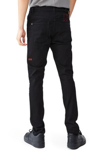 A black wash gives wardrobe versatility to these slim-fit jeans cut from light-stretch denim and finished with signature cross embroidery in back. 31" inseam; 12 1/2" leg opening; 11" front rise; 15" back rise (size 32) Button fly Five-pocket style 98% cotton, 2% elastane Machine wash, dry flat Imported