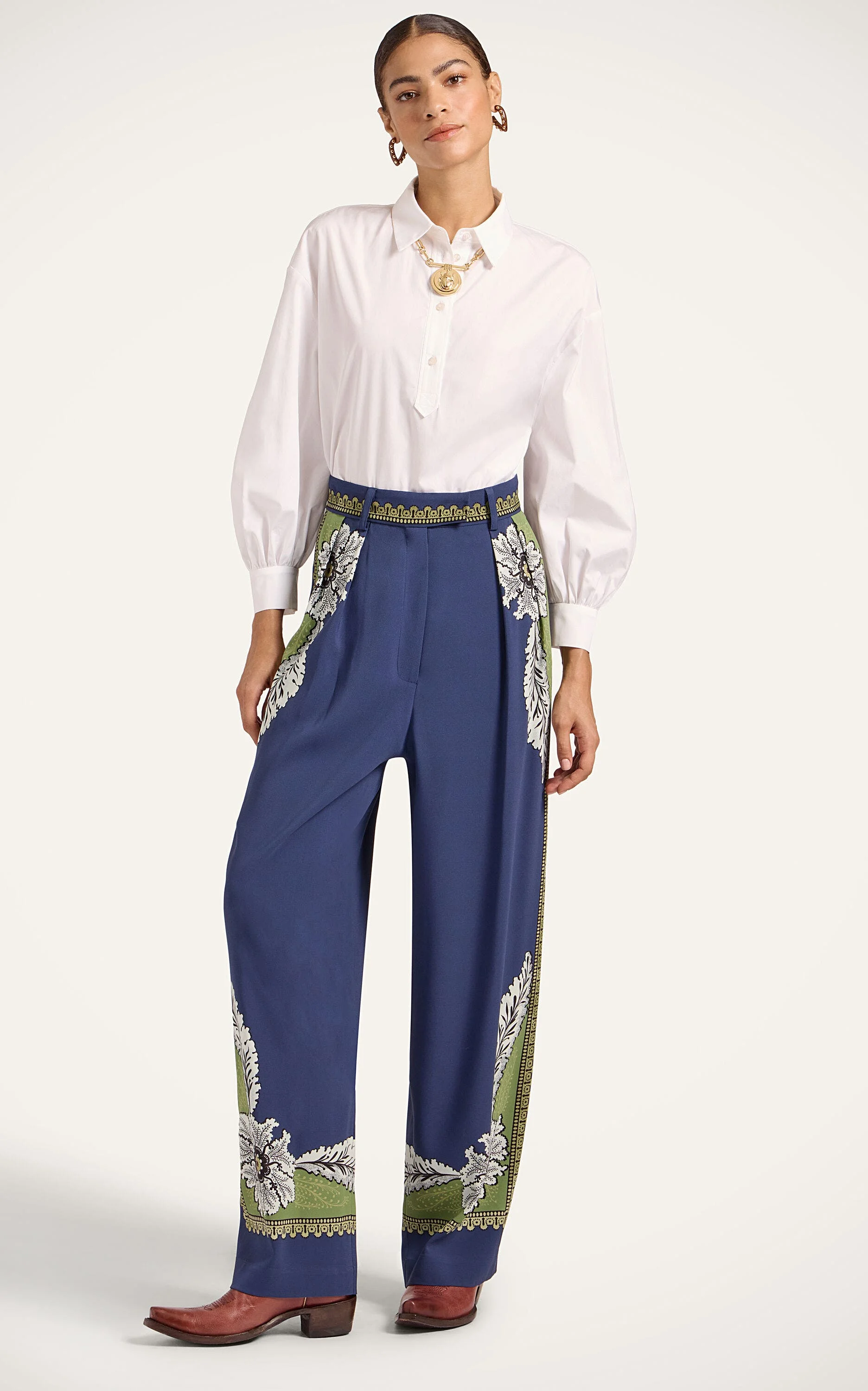 The perfect synthesis of uptown allure and downtown edge, the Brooklyn Pants are our new elevated-everyday-aesthetic obsession. High waisted with an oversized, slightly barrel-shaped silhouette, these leg-lengthening trousers arrive in Italian envers satin with a little stretch and a hand-placed print for year-round radiance. Envers satin Wide leg pant High Waist Made in Italy Composition: 96% cotton 4% elastane