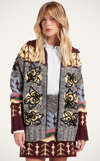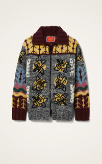 Want to embody that apres ski chic without all the fuss of renting the boots? This long, chunky cardi with a funnel collar is so juicy, so curl-up-in-me cosy that we're not taking it off all season. Crafted from an intricately embroidered Italian wool blend, this feels almost like a cross between a coat and a sweater, the perfect combination for that I-just-threw-this-on-and-still-look-fabulous feel. Wool blend cardigan Zipper Hits below bum Embroidered all over funnel collar 100% Made in Italy Composition: 75% Wool 20% Polyamide 5% Viscose
