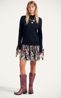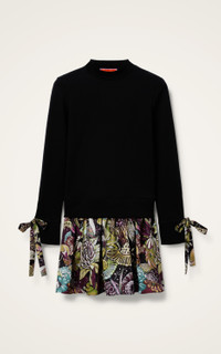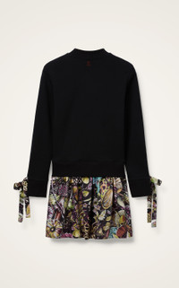 The Sporty Dress puts a cute style spin on the humble sweatshirt so you don’t have to. Done in our soft 100% cotton felpa, the sweatshirt part does the casual-comfy-cosy thing, while the silky twill flippy skirt adds a flirty touch. As for the details, we love that mock neckline and ribbons on the sleeves you can tie or let loose. Enchanting in this intricate Fun-Gi print, it’s as cute for city cocktails as it is easy for a casual Sunday. You know we love a little high-low mix. Sweatshirt top made from cotton felpa Attached miniskirt made from silky twill Mock neckline Ribbons on sleeves 100% Made in Italy Composition: 80% Cotton 20% Polyester