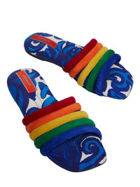 Prepare for your vibration to be well and truly raised in these rainbow-pumping flats. Our Tones Slides are decorated in this gorgeous anemone print and loaded with color to slip in with the most maximalist of outfits or add a punch to a more minimalist monochrome look. Made with a contoured footbed to bring extra comfort to all your toe-tapping this summer. Cotton chevron Multicolor strap Moulded footbed Flat slip-on silhouette