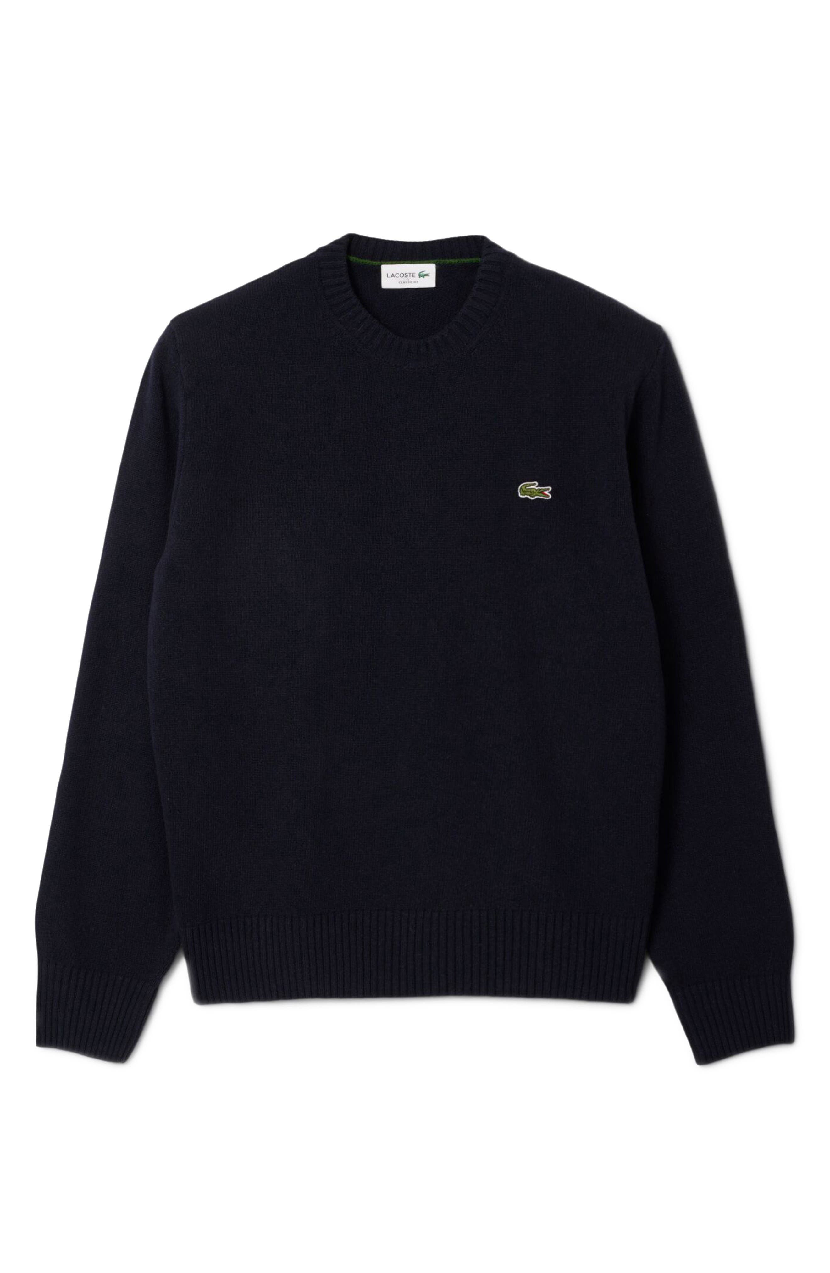 Lacoste Classic Fit Merino Wool Crewneck Sweater in Navy Blue at Nordstrom