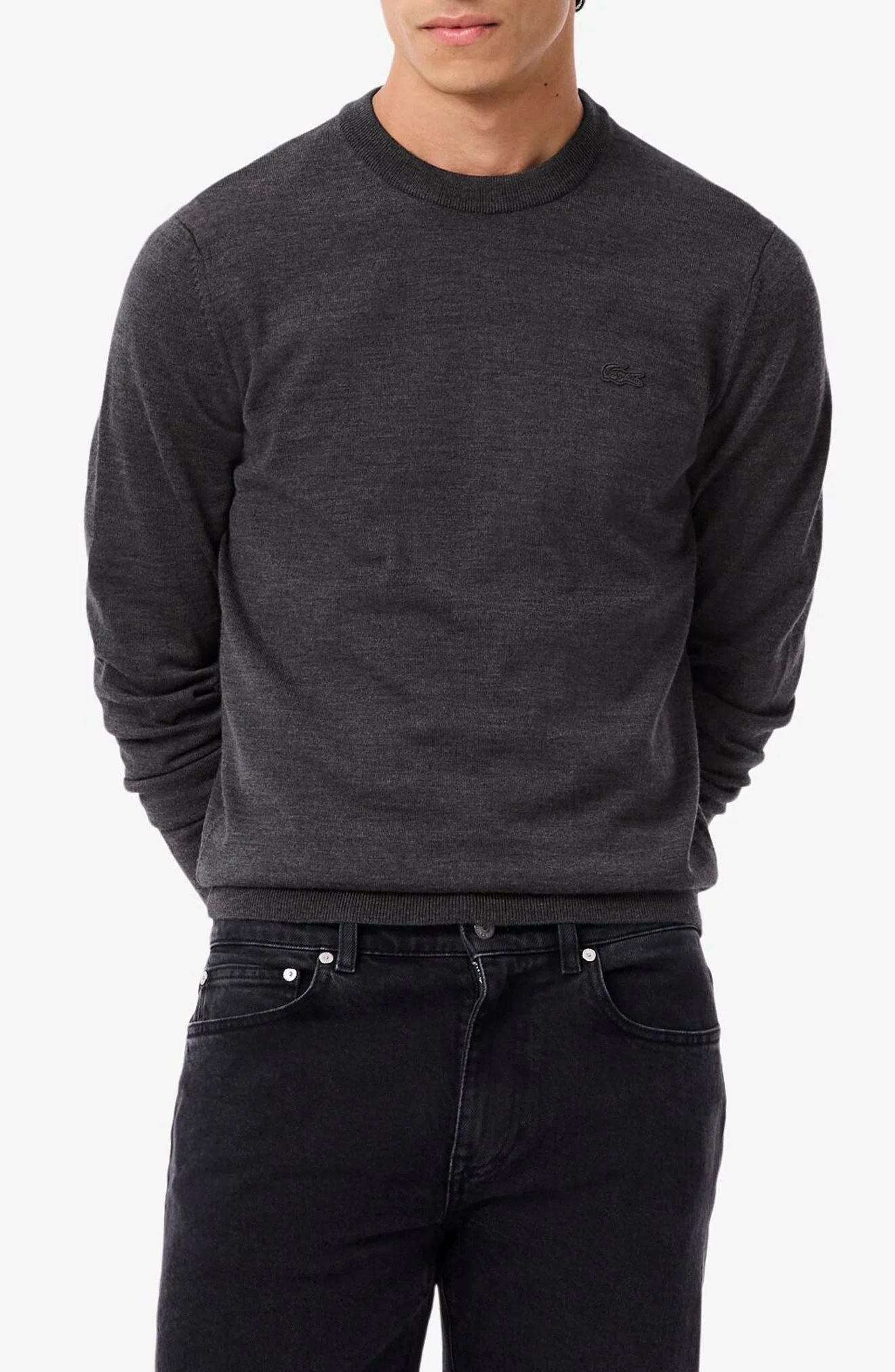 Lacoste Merino Wool Crewneck Sweater in Pitch Chine at Nordstrom