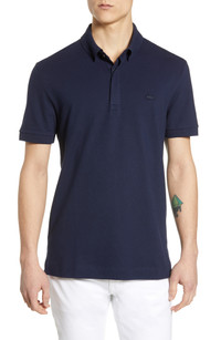 This pique-woven polo embellished with the signature croc patch is designed for everyday comfort with a classic cut and just-right stretch. 28" length (size Medium) Covered button placket Spread collar Short sleeves 94% cotton, 6% elastane Machine wash, line dry Imported