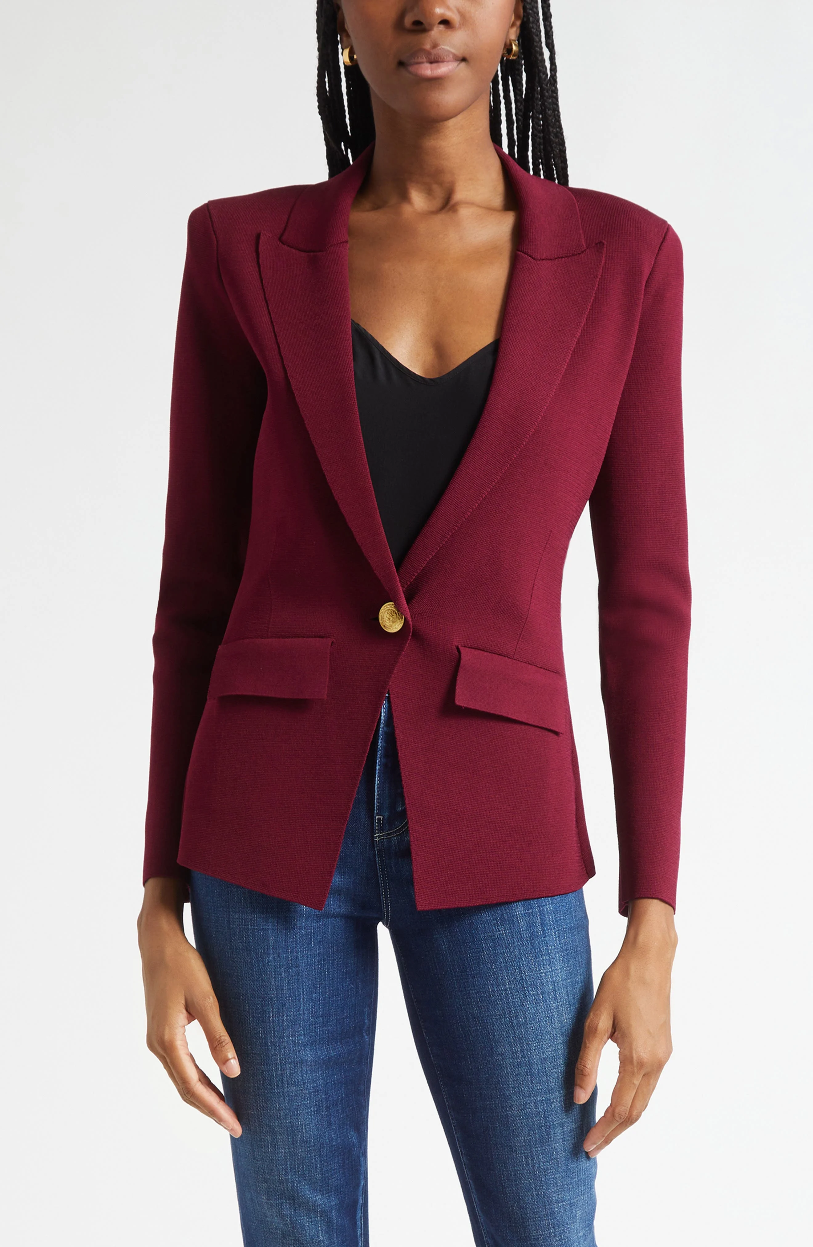 L'AGENCE Chamberlain Knit Blazer in Dark Port/Gold at Nordstrom