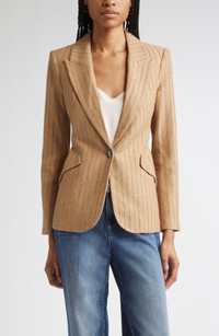 L'AGENCE Chamberlin Charcoal Stripe Blazer in Tan Charcoal Stripe at Nordstrom